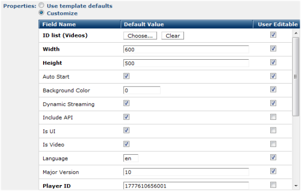 CommonSpot saves user-editable values for display the next time the player is opened in the Multimedia Element. If you make a user-editable setting non-user-editable, CommonSpot ignores the value it contains. If you subsequently reset it to user-editable, CommonSpot displays the last-saved value in an editable field.