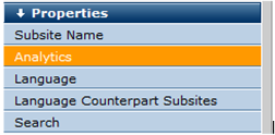 You are here: Administrators Reference > Subsite Administration > Subsite Properties > Analytics