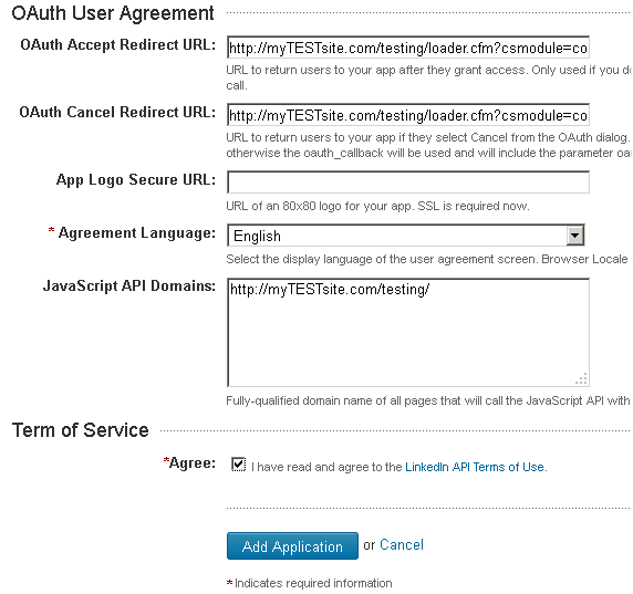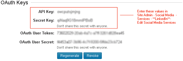 for the LinkedIn service to display the Edit Social Media Service dialog.