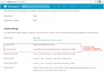 for the Twitter service, enter the Consumer ID and Consumer Secret properties, and save.