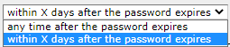 within X days after the password expires If a user has not logged in within the specified number of days, their account is locked and cannot be used without being explicitly reset by an administrator.