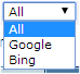 The dialog has a filter for switching between search engines. Pick from the Search Engine dropdown and click the Filter button to display the API account for that search engine.