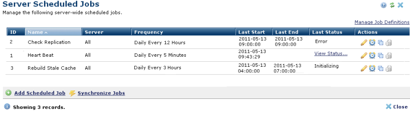 Under a replication environment this dialog is accessible on both the authoring server and each Read Only Production server, and manages only jobs on that server.