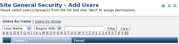 Access this dialog by clicking Add User(s) in the Site General Security dialog.