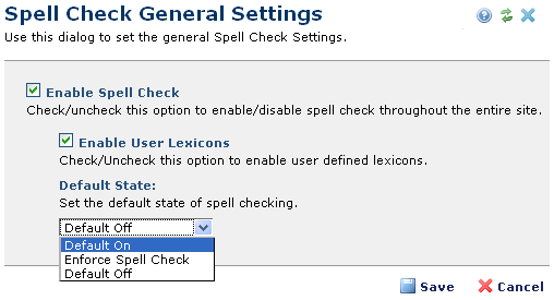 You are here: Administrators Reference > Site Administration > Authoring Tools > Spell Check Settings > Spell Check General Settings