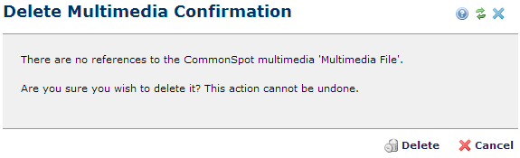 For deleting a single file, with no active dependencies, CommonSpot displays a message like the following.