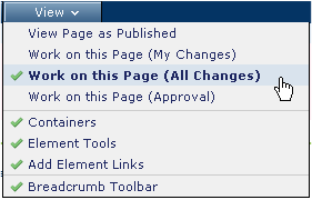 In Edit Mode, contributors can see published content, plus any changes that they or anyone else has in a Work in Progress or Pending Approval state.