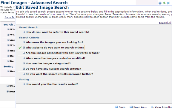 You are here: Contributors Reference > CommonSpot Workspace > My CommonSpot > My Favorite Saved Searches > Create Saved Search > Edit Saved Image Search