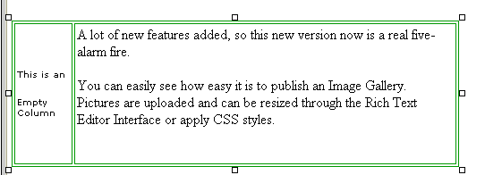 The editable region is in the center of the interface, where the content is displayed and edited in a WYSIWYG format. As you edit content the current selection is also indicated in a manner similar to that of Microsoft Word. Depending of the type of content being edited the selection may appear different. The image below shows a table selected with the Editable Region.