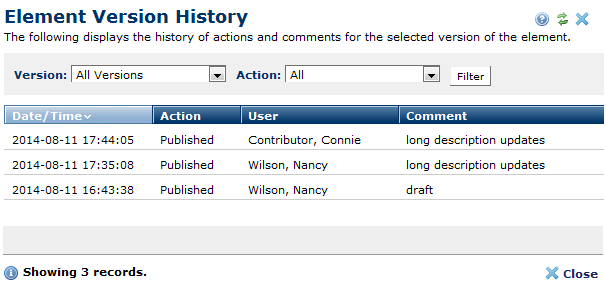 You are here: Contributors Reference > Elements – General Concepts > Element Version History