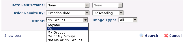 Owner - You can further filter image search results by group membership. Select from the dropdown: