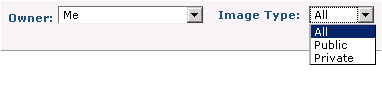 Image Type - This field displays if you select Me, My Groups, or Me or My Groups as owner. Filter by public or private image types.