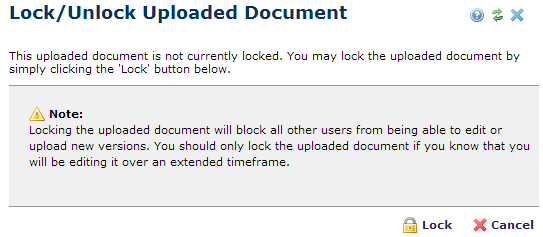 Choose Actions – Lock Uploaded Document to enable/disable other users from editing the current document.