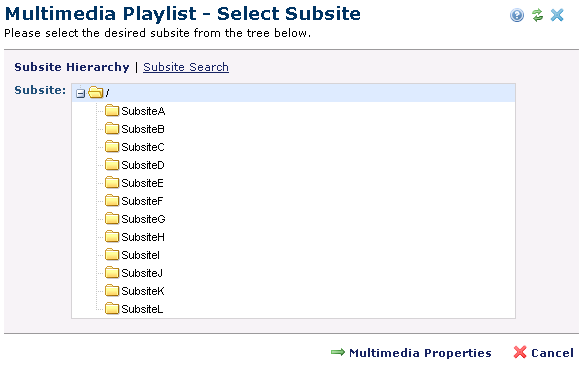 Multimedia Playlist - Select Subsite