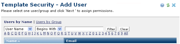 You are here: Contributors Reference > CommonSpot Menus > My Content > My Templates > Template Security > Template Security Add User