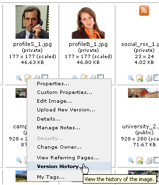 Version History is especially useful because it allows you to roll back to an earlier version of the image. See Edit Image for more information on using these option.