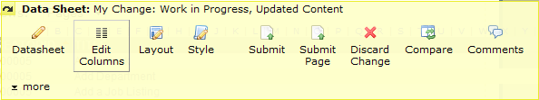 After defining a view, click the Data Sheet Element Tool icon and select Edit Columns to open the Datasheet View Columns dialog box. This dialog box allows you to control the appearance of each data column for a view defined for a Datasheet Element. By default column headers are in upper case and match the field name if from a custom element. You may change the case and the column header.