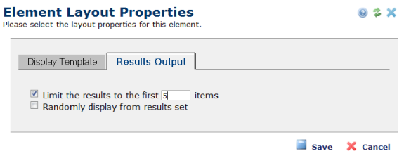 Note: Selecting "Randomly display from results set" can have a negative impact on page performance, as this option forces this Element to be dynamic.