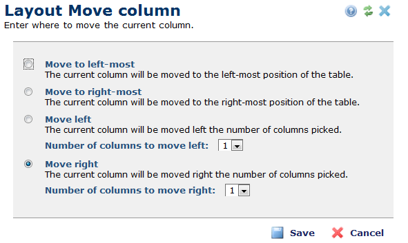 Depending on where the column resides, you may see a general Layout Move Column dialog or dialogs that are only used if the column is the left-most or right-most column.